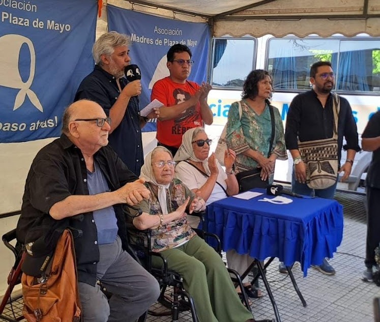 Por la tarde, en un acto histórico en Plaza de Mayo y luego en la Casa de las Madres, hablaron referentes internacionales y de la Coordinadora. Bajo el abrazo de las Madres. José Schulman retomó una enseñanza de Hebe: no hay derechos humanos si cada cual reclama por “su” preso; la lucha es por todas y todos, sin concesiones al discurso imperial. Mary Soto denunció nuevas maniobras judiciales contra Víctor Polay y recordó la coherencia histórica de Hebe. Gustavo Gallardo explicó cómo los acuerdos de Paz en Colombia fueron vaciados por la derecha y el poder judicial. En tanto, Vladimir Ochoa llamó a una etapa de resistencia y construcción de poder popular en Bolivia.