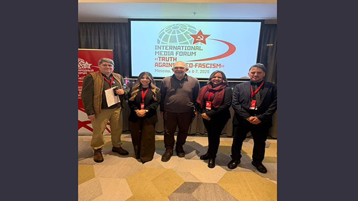 En Moscú se lleva a cabo el Foro Internacional “La Verdad contra el Neofascismo”, organizado por el Partido Comunista de la Federación Rusa en el marco del 108º aniversario de la Revolución de Octubre. El encuentro, inaugurado por Guennadi Ziugánov, secretario general del PCFR, reúne a más de un centenar de delegados de unos 50 países. El Partido Comunista de la Argentina participa a través de su responsable de Propaganda, Emiliano Vázquez.