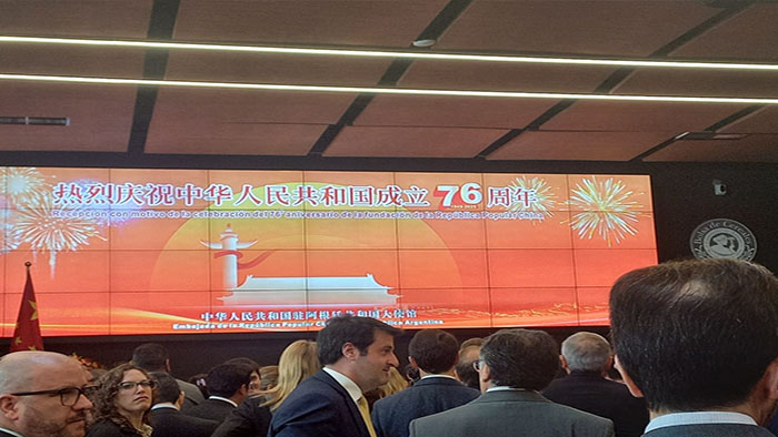 Con motivo del 76 aniversario del triunfo de la Revolución China y de la fundación de la República Popular, a cumplirse el primero de octubre, la embajada de ese país llevó a cabo un acto que tuvo lugar en la sede de la Bolsa de Cereales. Estuvo presente una delegación del Partido Comunista de la Argentina.