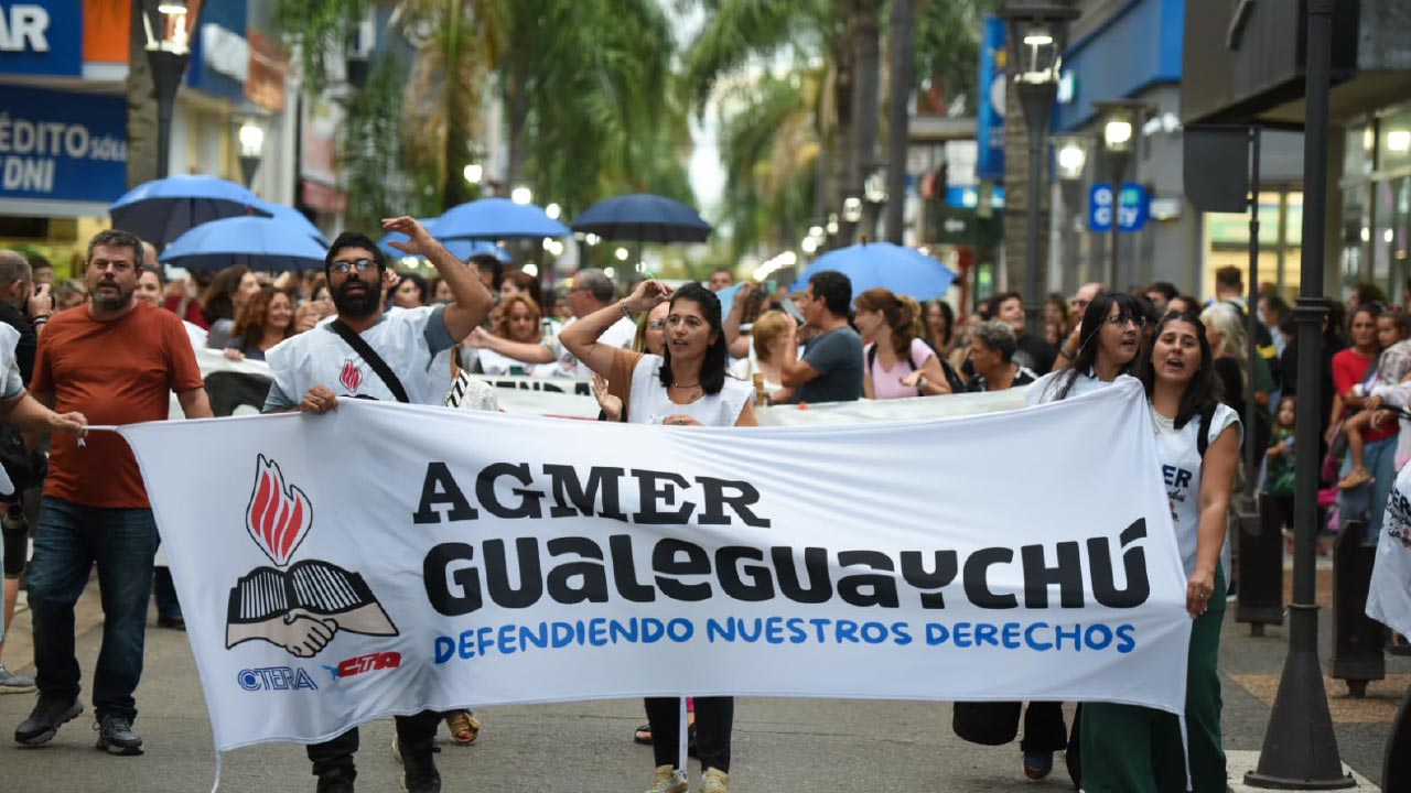 Fue durante una jornada de paro y protesta contra las políticas educativas de la Gestión Frigerio y la “Ley de Libertad Educativa” de Javier Milei. Salarios a la baja y un ataque a la Caja de Jubilaciones encienden luces de alerta entre los trabajadores agrupados en Agmer. La marcha en Gualeguaychú fue contundente.