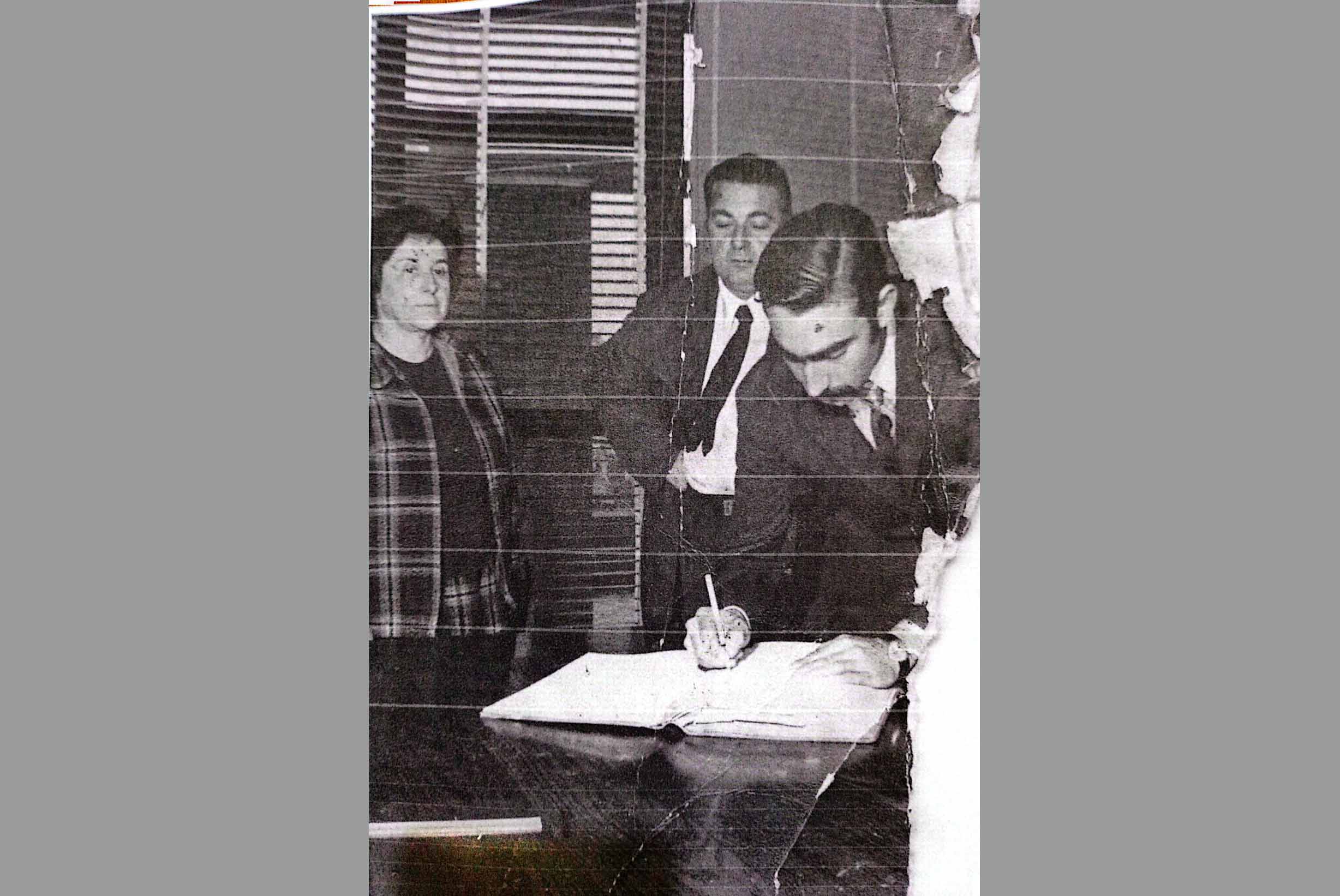 Foto del casamiento de Ramiro Bustillo. De fondo, Oscar Reyes, testigo de la boda.