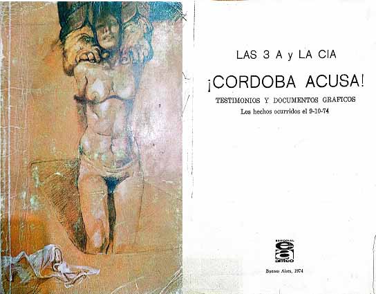 Portada del libro Nunca Más de la Comisión Investigadora constituida en Córdoba/ Tapa del folleto de Editorial Cartago sobre el accionar de la Triple A en Córdoba.