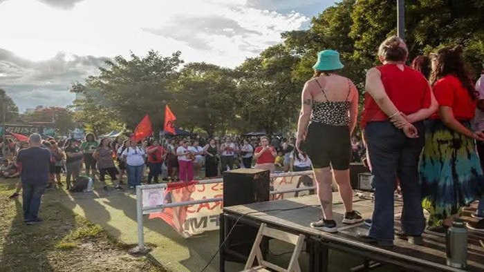 En el Encuentro Plurinacional de Mujeres y Diversidades se realizó un acto en homenaje a Florencia Gómez y, en su nombre, se exigió justicia para todas las víctimas de femicidios y trans-travesticidios.