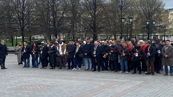Durante la mañana de ayer, domingo, los más de 300 delegados internacionales llegados de todos los continentes asistieron a una ceremonia en la Plaza Roja para depositar claveles rojos frente a la llama eterna de la Tumba del Soldado Desconocido, que honra la memoria de los caídos del Ejército Rojo en su lucha contra el nazifascismo. Luego se dio paso a la apertura formal del evento, donde la delegación argentina, integrada por el Secretario General del Partido Comunista, Jorge Kreyness; Mario Mazzitelli, Secretario General del Partido Socialista Auténtico; Gastón Harispe, Secretario General del Movimiento Octubres y Néstor Piccone, Coordinador Nacional de Plataforma, entre otros, pudo exponer su posición.