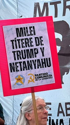 El PC marchó hacia Plaza de Mayo repudiando el alineamiento del gobierno que encabeza Javier Milei con los intereses de Washington y Tel Aviv, algo con lo que “arrastra a nuestro país a apoyar las matanzas de Donald Trump y Benjamín Netanyahu”, por cual, recalcó, “decimos No en nuestro nombre, no a la guerra y basta de genocidio”.