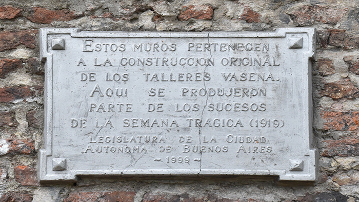 Durante la segunda semana de 1919, los trabajadores de Vasena, que llevaban a cabo una huelga para demandar mejores condiciones laborales, fueron masacrados en un hecho que representa uno de los primeros actos de Terrorismo de Estado, junto a los de la Patagonia Rebelde, que tuvo lugar dos años más tarde.