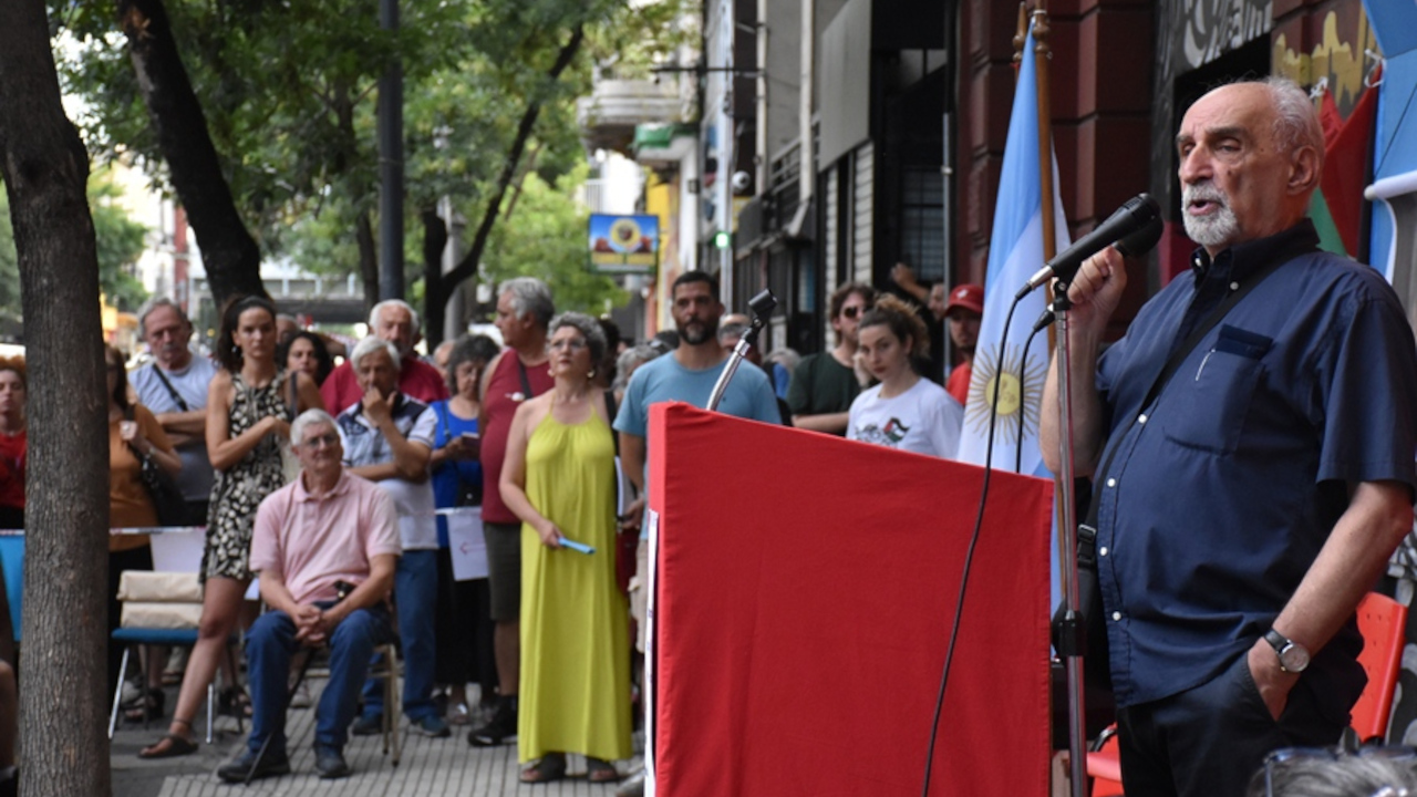La hermandad entre los pueblos vistió la fachada de la sede del Comité Central del Partido Comunista de la Argentina. La bandera nacional, la de la República Bolivariana de Venezuela, la de Cuba y Palestina e imágenes de Simón Bolivar, el Che, Fidel, Hugo Chávez y José de San Martín anunciaban el fuerte contenido antiimperialista del acto que se llevó a cabo el sábado por la tarde. De cara al 50 aniversario del último golpe de Estado genocida y de los denodados intentos del gobierno nacional por otorgarles impunidad a los responsables de los crímenes cometidos durante la dictadura cívico-militar, también se destacaba visitendo el frente del CC un cartel con la leyenda “Pido Castigo”, acompañada de los nombres de los y las camaradas detenidos-desaparecidos del PC y otro que recordaba, con la imagen de Milagro Sala, que en esta democracia restringida hay presxs políticxs por los que debemos seguir exigiendo su libertad.
