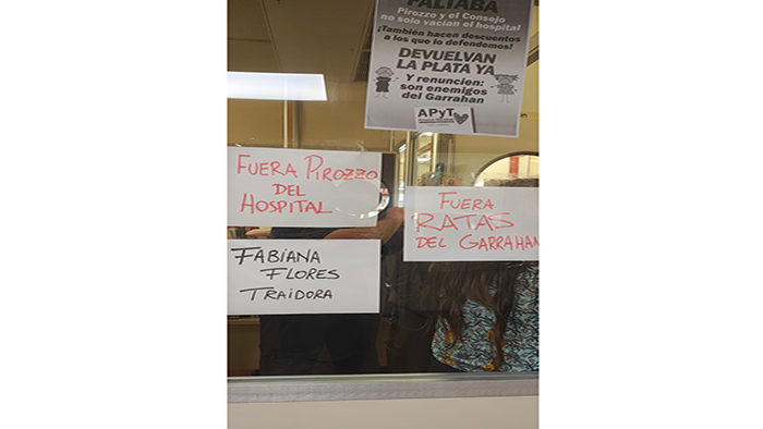 Con este telón de fondo, el viernes y durante varias horas, trabajadores del Garrahan tomaron la Dirección del nosocomio para demandar la restitución inmediata de los haberes descontados por participar de una huelga para reclamar el cumplimiento de la Ley de Financiamiento Pediátrico. Y la respuesta de las autoridades fue enviar a policías que intentaron amedrentar a los trabajadores que colocaban carteles en el sitio.